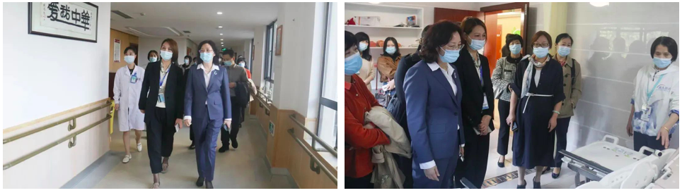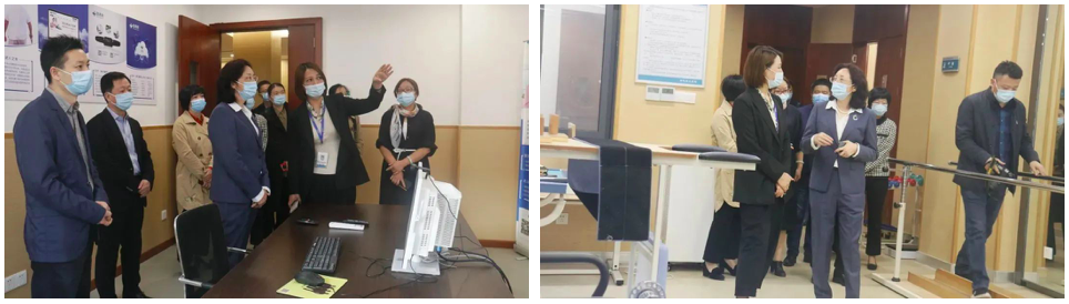 調(diào)研組一行實地參觀了康久醫(yī)院各科室、住院部,普陀天頤老人健康自理區(qū)、小單元多功能集中養(yǎng)護(hù)區(qū)、智能助浴室、棋牌室、書畫室、禮佛室等功能區(qū)域,詳細(xì)了解各項服務(wù)。