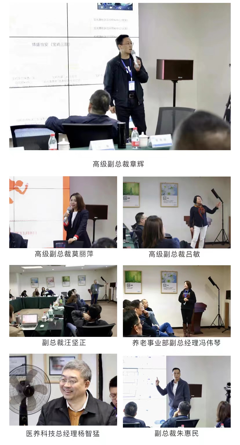 下午,各區(qū)域負責人分享了本部門2021年重要工作。高級副總裁章輝展示了數(shù)字康養(yǎng)1.0版本并介紹了西安、常山、衢州等項目的開展情況;高級副總裁莫麗萍分享了臨安賽康、蕭山快康、康久天頤養(yǎng)老院 | 護理院的運營狀況,并詳細介紹了各院特色科室的打造和未來醫(yī)院一體化發(fā)展的設想;高級副總裁呂敏就嘉興和舟山醫(yī)院的現(xiàn)狀進行了分析,并指出更廣泛的業(yè)務拓展和更完善的就醫(yī)流程至關重要,在發(fā)展的同時必須堅持因地制宜;副總裁汪堅正介紹了衢州、成都和石嘴山機構的基本情況,并表示未來要從創(chuàng)新中尋求差異化,不斷提升服務質量;養(yǎng)老事業(yè)部副總經理馮偉琴介紹了運營中和洽談中的養(yǎng)老機構基本情況,強調把控服務質量的重要性;醫(yī)養(yǎng)科技總經理楊智猛介紹了現(xiàn)有業(yè)務的工作進度和現(xiàn)有產品的升級優(yōu)化情況;副總裁朱惠民跟大家分享了集團新辦公樓的設計方案以及養(yǎng)老網(wǎng)論壇等項目的籌備情況,表示要各部門間要保持信息溝通順暢,促進集團的持續(xù)發(fā)展。
