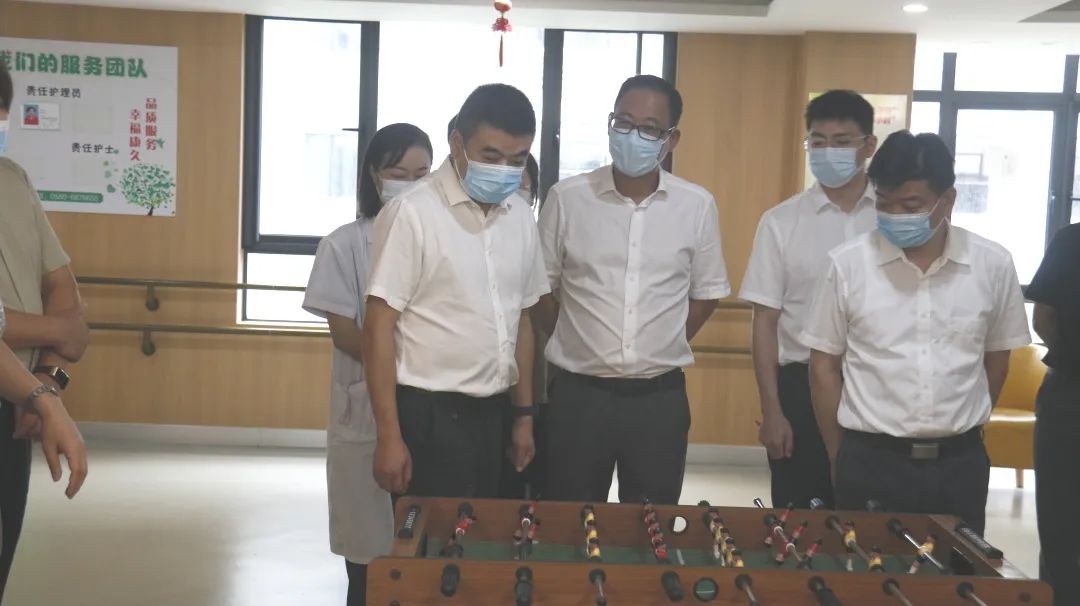 9月2日,舟山市普陀區(qū)委書記孫志龍一行蒞臨康久集團(tuán)旗下普陀天頤老人之家調(diào)研,舟山市普陀區(qū)民政局局長丁勇等相關(guān)人員陪同調(diào)研??稻眉瘓F(tuán)副總裁、普陀天頤老人之家院長馮偉琴為調(diào)研組一行介紹普陀天頤的運(yùn)營情況。