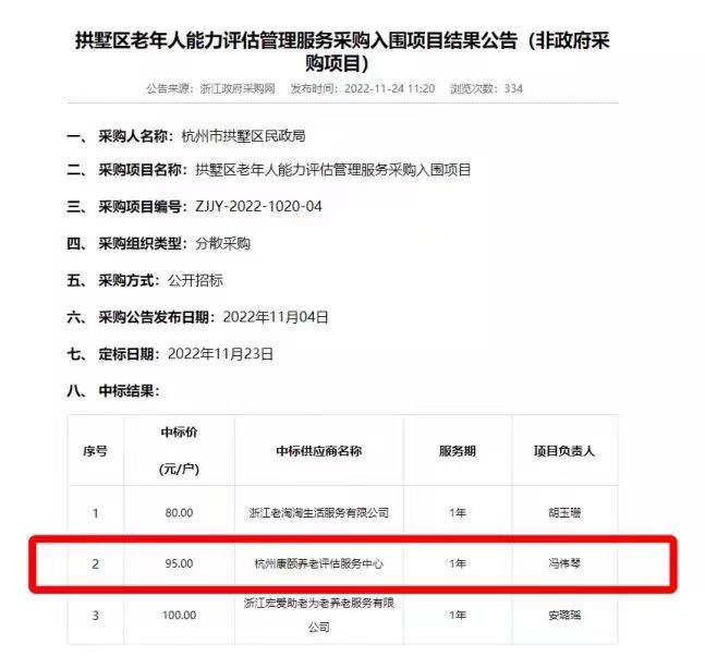 11月24日,康久集團旗下杭州康頤養(yǎng)老評估服務中心成功中標“杭州市拱墅區(qū)老年人能力評估管理服務項目”。