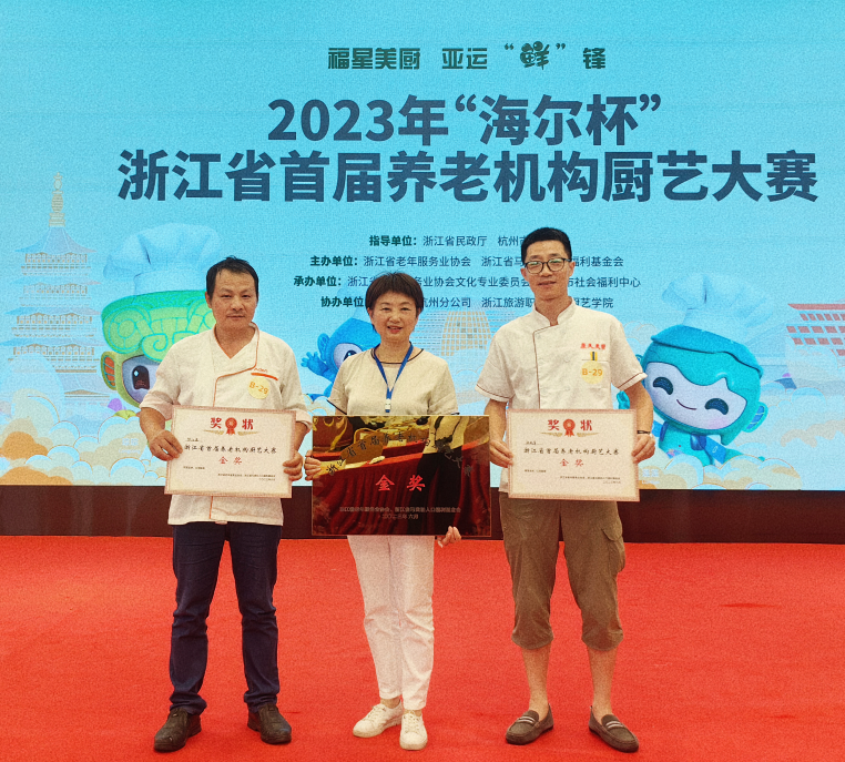 6月30日,2023年“海爾杯”浙江省首屆養(yǎng)老機構(gòu)廚藝大賽在浙江旅游職業(yè)學(xué)院南校區(qū)火熱開賽,大賽以“福星美廚 亞運‘鮮’鋒”為主題,來自浙江省各地的50家養(yǎng)老機構(gòu)、上百位選手齊聚杭州、同臺競技,開展了一場別開生面的“廚王爭霸賽”。大賽共產(chǎn)生團體金獎8名、銀獎12名、銅獎18名、優(yōu)勝獎若干名,參加特色菜制作表演賽環(huán)節(jié)的10家養(yǎng)老機構(gòu)還分獲最具特色獎、最佳創(chuàng)意獎和最具人氣獎??稻眉瘓F旗下杭州康久天頤養(yǎng)老院以優(yōu)異的表現(xiàn)榮獲浙江省首屆養(yǎng)老機構(gòu)廚藝大賽團體金獎。